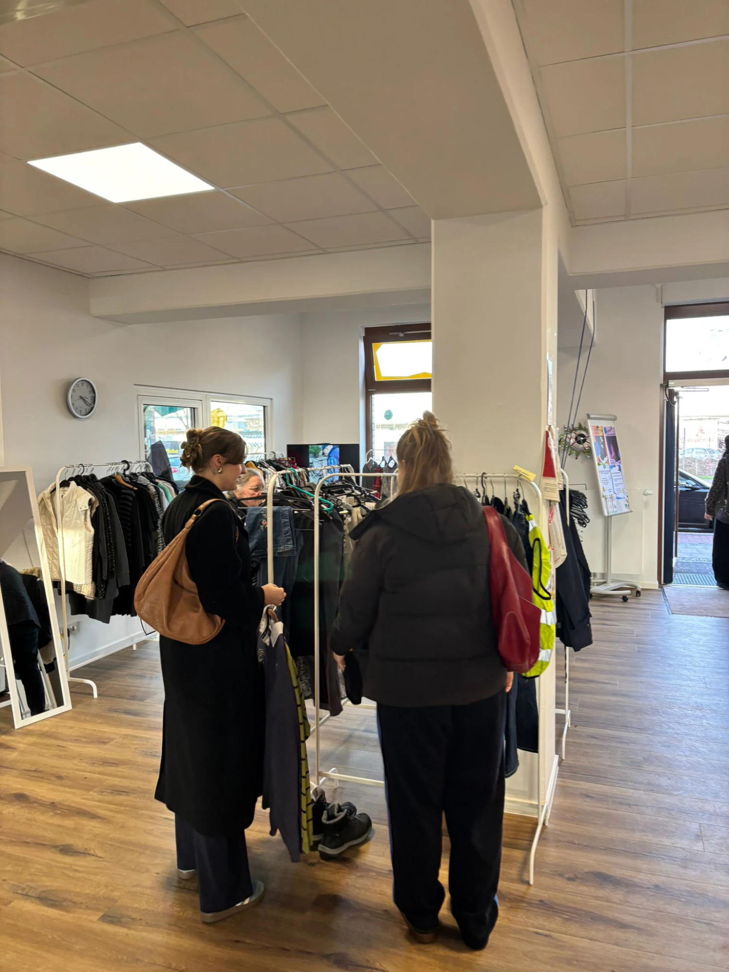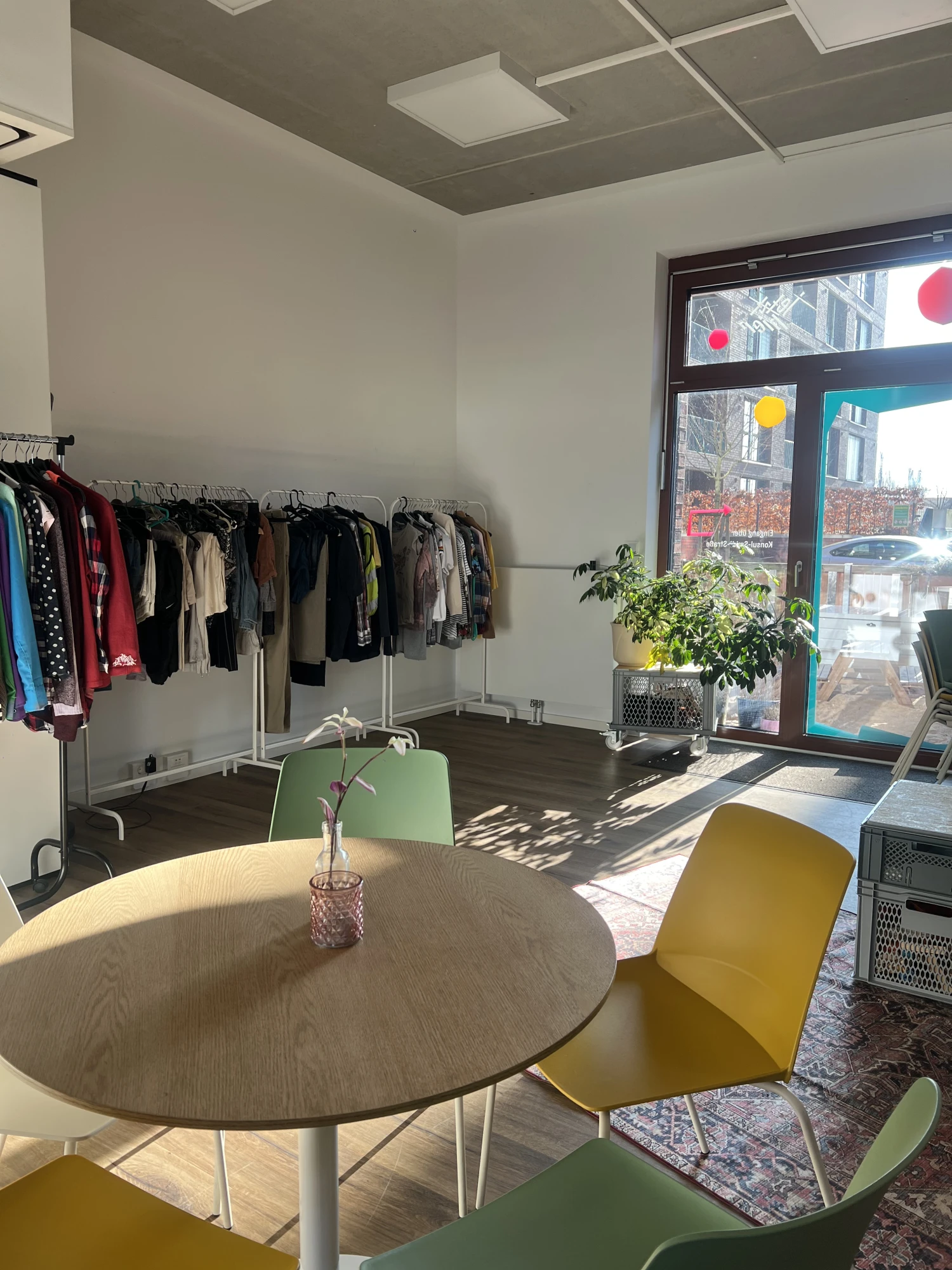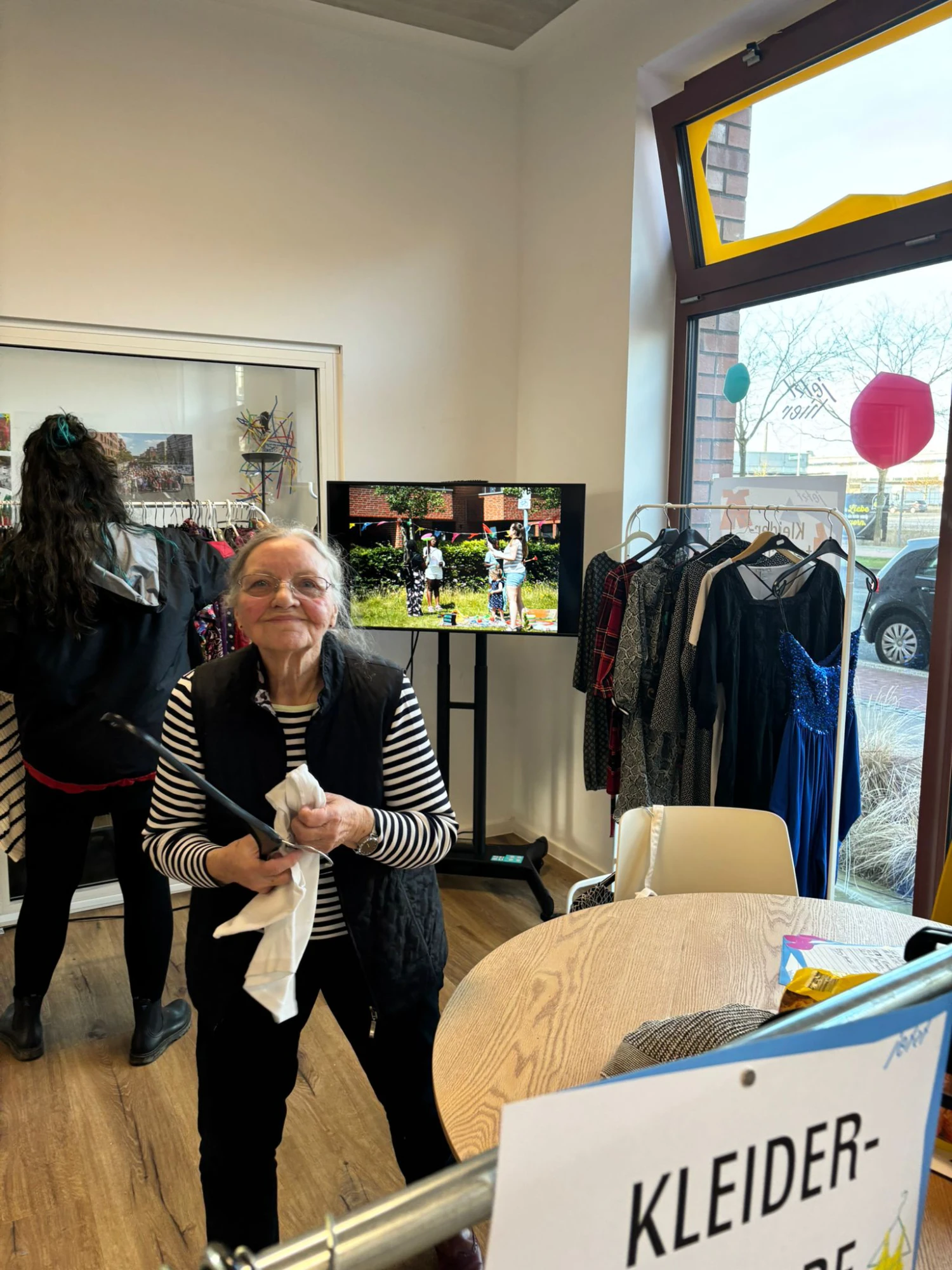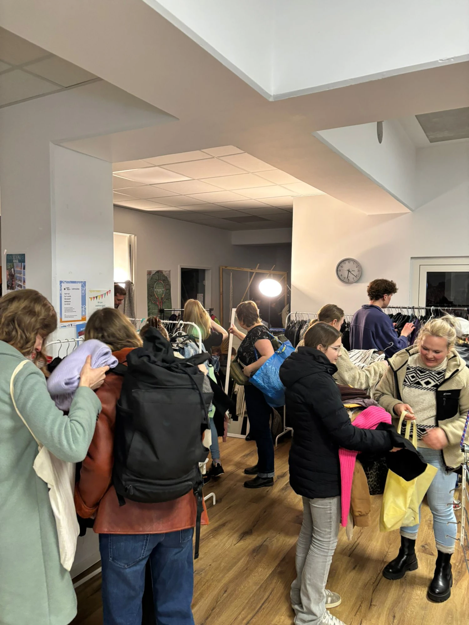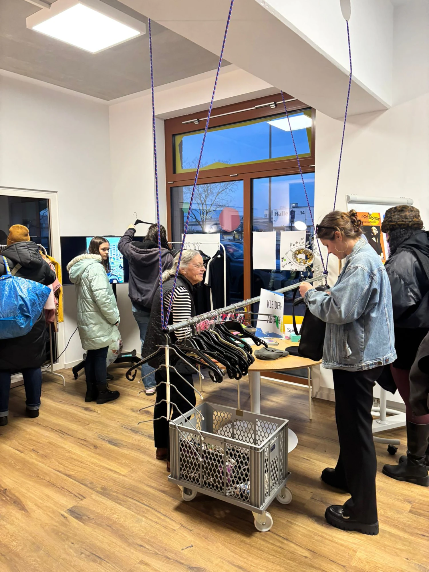 Warum immer neue Kleidung kaufen, wenn gut erhaltene Stücke auch weitergegeben und getauscht werden können? Mit dieser Idee fand vom 24. bis zum 28. Februar im Quartierstreff Jetzt Hier ein Kleidertausch statt - mit sehr großem Erfolg. Denn die geschätzen 350 Besucher:innen sind überwiegend fündig geworden und so sind insgesamt 860 Kleidungsstücke wieder in neue Hände gekommen. Die Idee zum Kleidertausch dafür entstand im Klimaforum und konnte insbesondere dank engagierter Ehrenamtlichen Nachbar:innen umgesetzt werden - Vielen Dank an Greta, Friedjof, Skye und Ibraim.