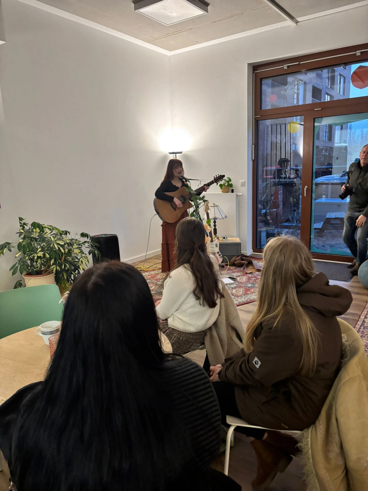 Auch an den folgenden Tagen blieb der Kleidertausch lebendig: Am Freitag sorgte Claudius Tœlke für musikalische Begleitung. Am Samstag ergänzte eine kleine Nähwerkstatt das Programm. Helene saß mit ihrer Nähmaschine bereit und half dabei, Kleidungsstücke umzunähen oder zu reparieren.