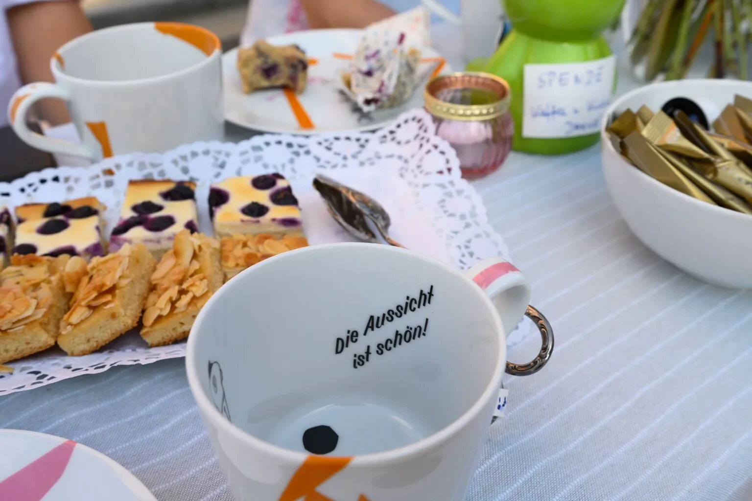 Für alle, die spontan zum Picknick dazukommen möchten: Bringt euch eine Decke und einen Picknickkorb mit oder nutzt unsere „Nimm Platz“-Tische, die wir extra für euch vorbereitet haben. Macht es euch bequem und breitet euch aus. Das benutzte Geschirr könnt ihr bei unserem Infostand abgeben oder eintauschen und weiteres Geschirr zum Picknicken ausleihen. Wir freuen uns auf ein buntes Picknick mit euch!