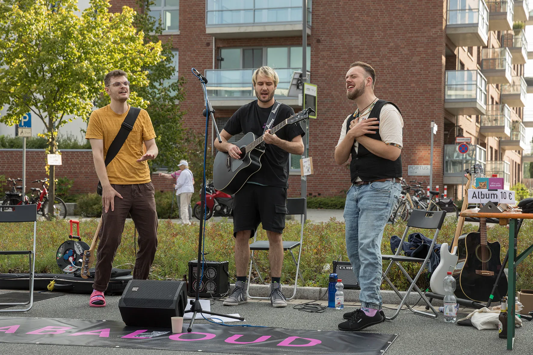 „Hey, wir sind ABALOUD. Drei Musiker aus Bremen und Oldenburg, die in ihrer Musik Themen wie Vielfalt, Erlebnisse, Gesellschaftskritik bis hin zu reinem Blödsinn verarbeiten. Die musikalische Bandbreite reicht vom Singer-Songwritertum bis hin zu Rock und auch Rap Einflüssen. Hierbei entsteht immer wieder ein wilder Genre Mix, sodass meistens für jede und jeden von euch was dabei ist. Unser Ziel ist es, mit euch eine gute Zeit zu haben. Wir jammen mit euch zusammen auf der Straße. Spielen unsere Tracks und ihr dürft mitmachen. Platz für freies jammen ist auch am Start.“
