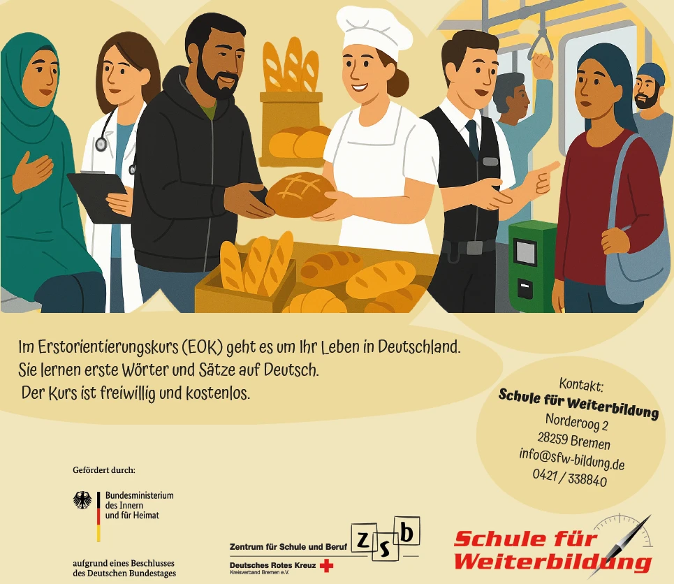 Hier gibt es auch das Plakat zum herunterladen: Plakat Erstorientierungskurs Überseestadt.